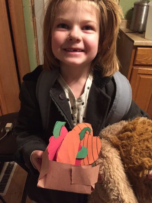 The picture below shows a basket full of pumpkins and apples my daughter created last year. This year she made a pumpkin patch. I love how just setting out basic supplies encourages their creativity – no Pinterest searching allowed!