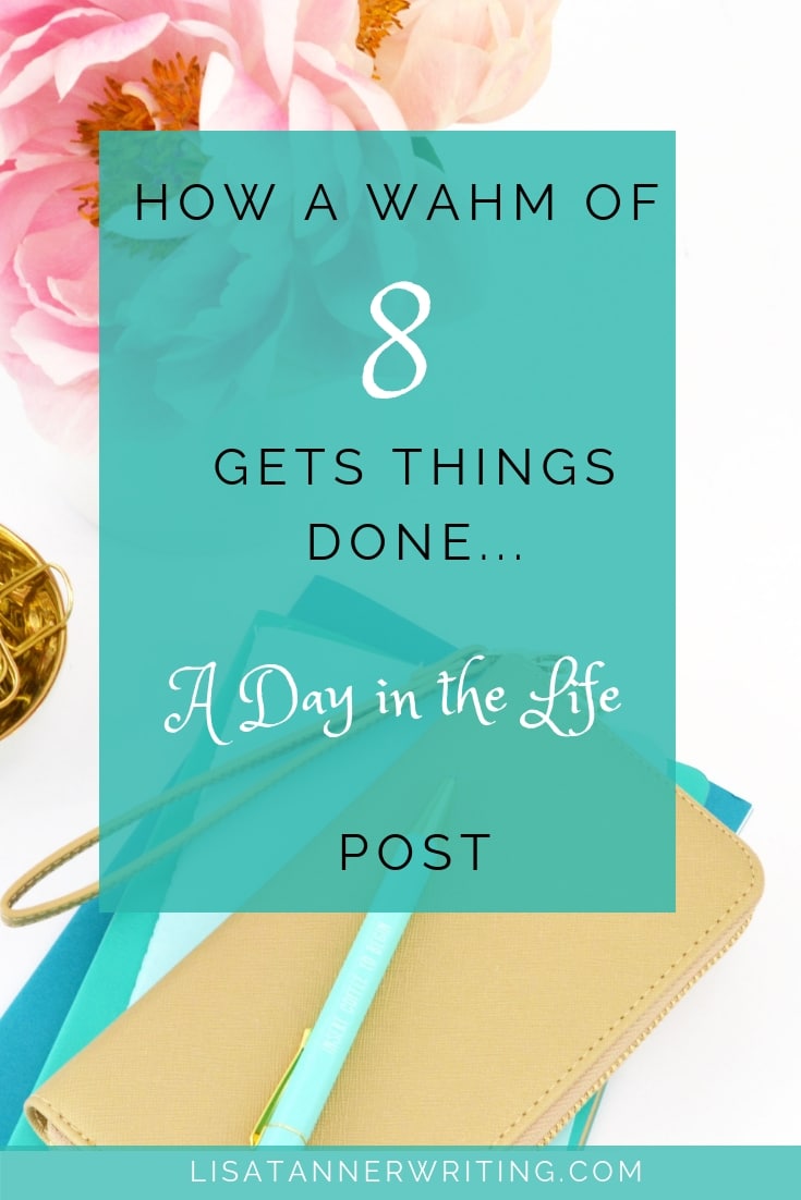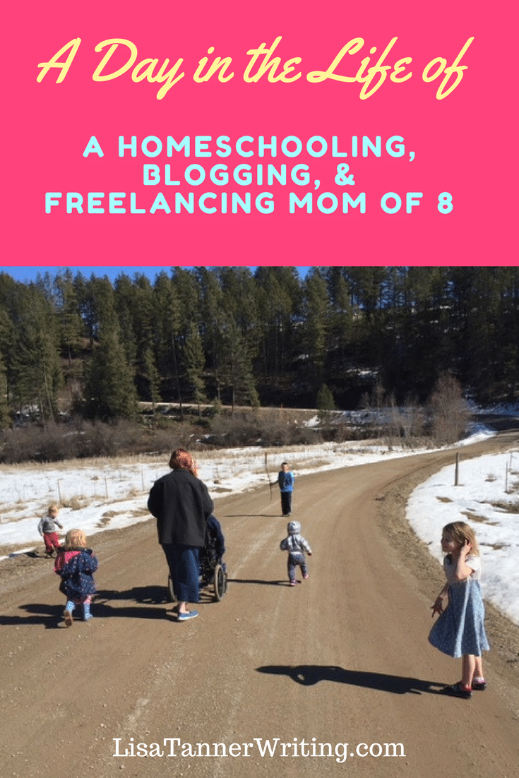 I wanted to share some tips for balancing homeschooling, work, and life, and thought this would be a fun format. So, I used the camera on my iPhone to capture some moments throughout the day back when I only had 8 kids. (I now have 9!)