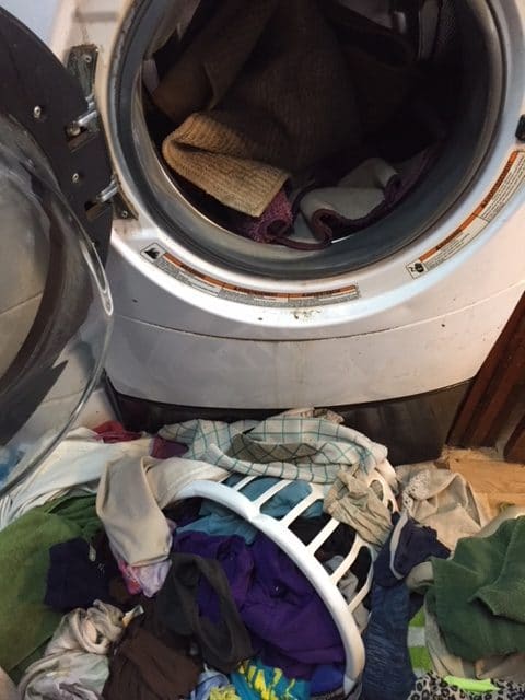 The pile starts off huge, but we keep switching it whenever it’s ready. Then we pile it up on the table. Throughout the day we separate it into piles and fold it.