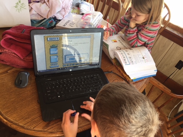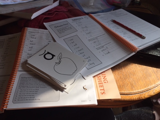 The kids have some subjects they do independently, and others they need help with. My oldest gets up in the morning and starts, so by this dedicated school time, she’s nearly done.