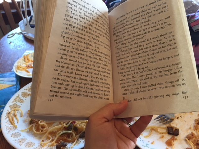 When lunch was ready, everyone washed up and gathered around the table. I read aloud a chapter of On the Banks of Plum Creek.