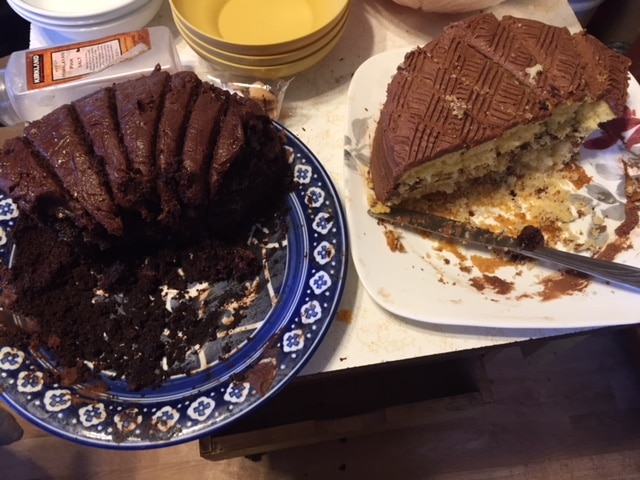 But, my mom brought over some leftover birthday cake for us on Sunday. When you have cake available, you eat cake! 😀